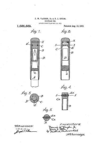 | attuale | 16:38, 19 ago 2012 | 1 159 × 1 704, 3 pagine (94 KB) | Piccardi (discussione | contributi) | {{PatentInfo |Inventor=Francis W. Vaughn, Henry J. Upton |Assignee=Vaughn-Upton Company |Country=US |ApplicationNum=660361 |ApplicationDate=1911-11-15 |PatentNum=1035665 |PatentDate=1912-08-13 |PriorityDate=1911-11-15 |Titolo=Fountain-pen |Marca=Unbran... |