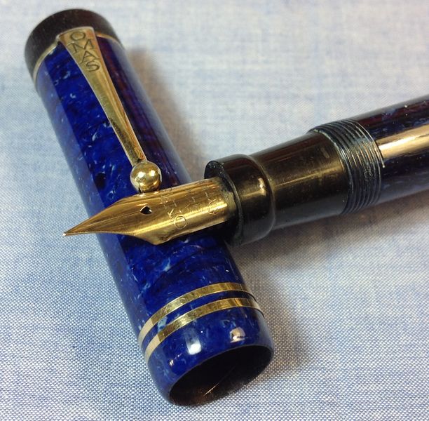 Photo of an rare early Omas flat-top, in Duofold style in lapis blues celluloid.
