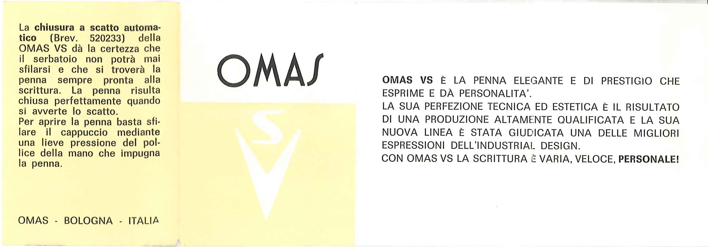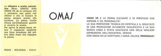 Scansione di un foglietto di istruzioni Omas degli anni '60. Relativo ad un modello Omas VS. Lato esterno. Sull'altro lato di File:Omas-VS-Instr-Internal.jpg. Da una confezione originale Ritoccata dall'autore per una migliore nitidezza.