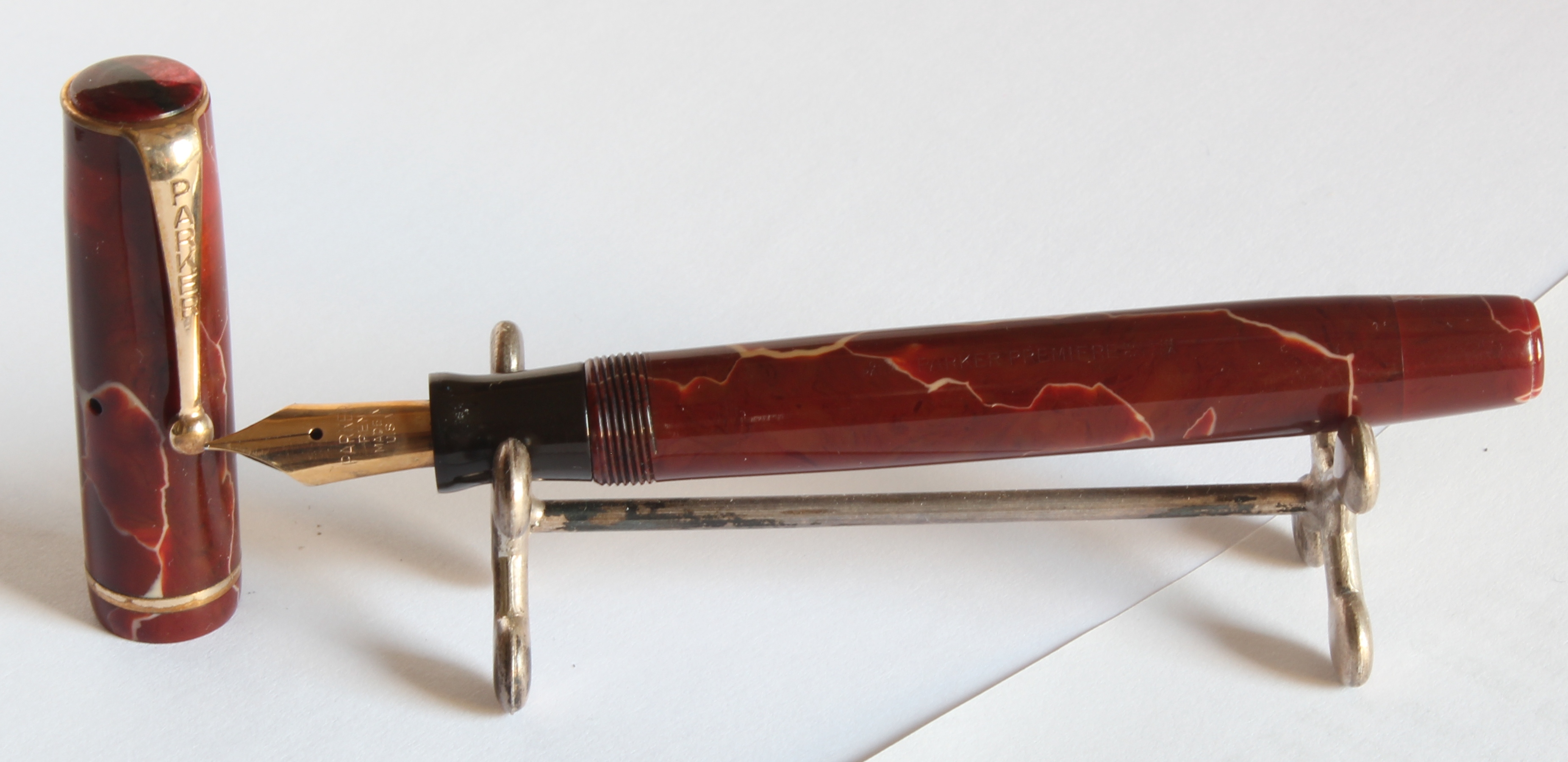 Photo of a Parker Premiere, a model belonging to the class of pens called by collectors Depression era pen.