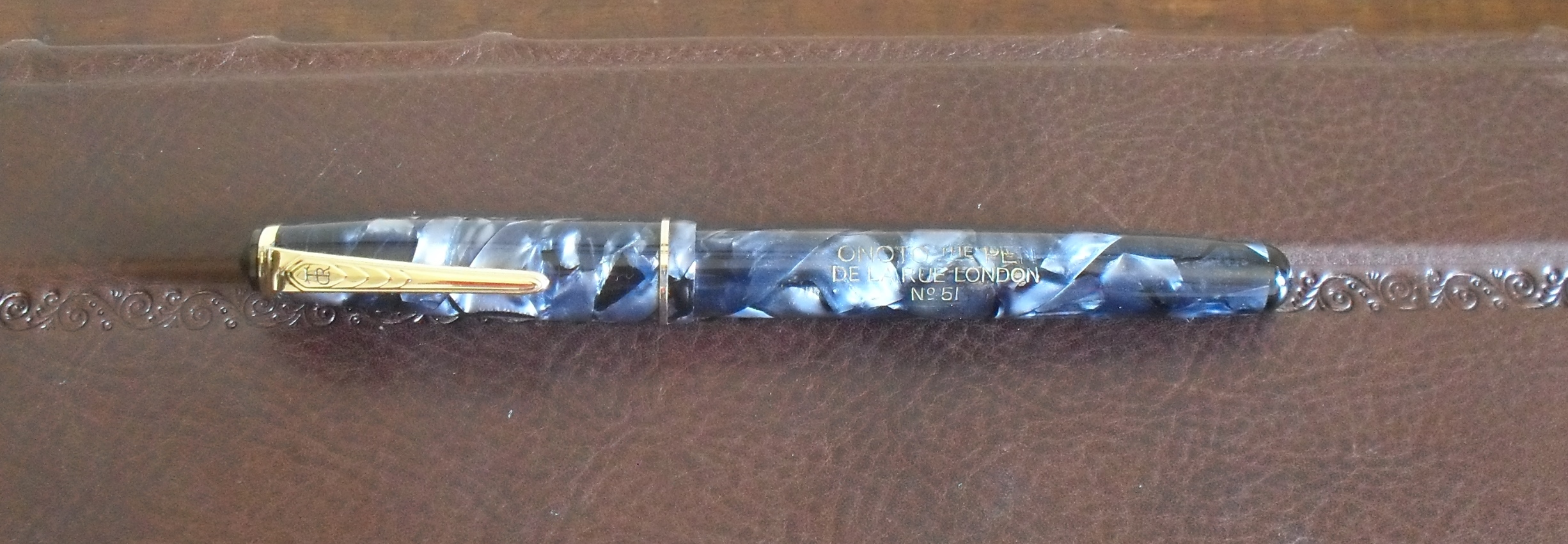 Photo of an Onoto, 51 in marbled blue celluloid.