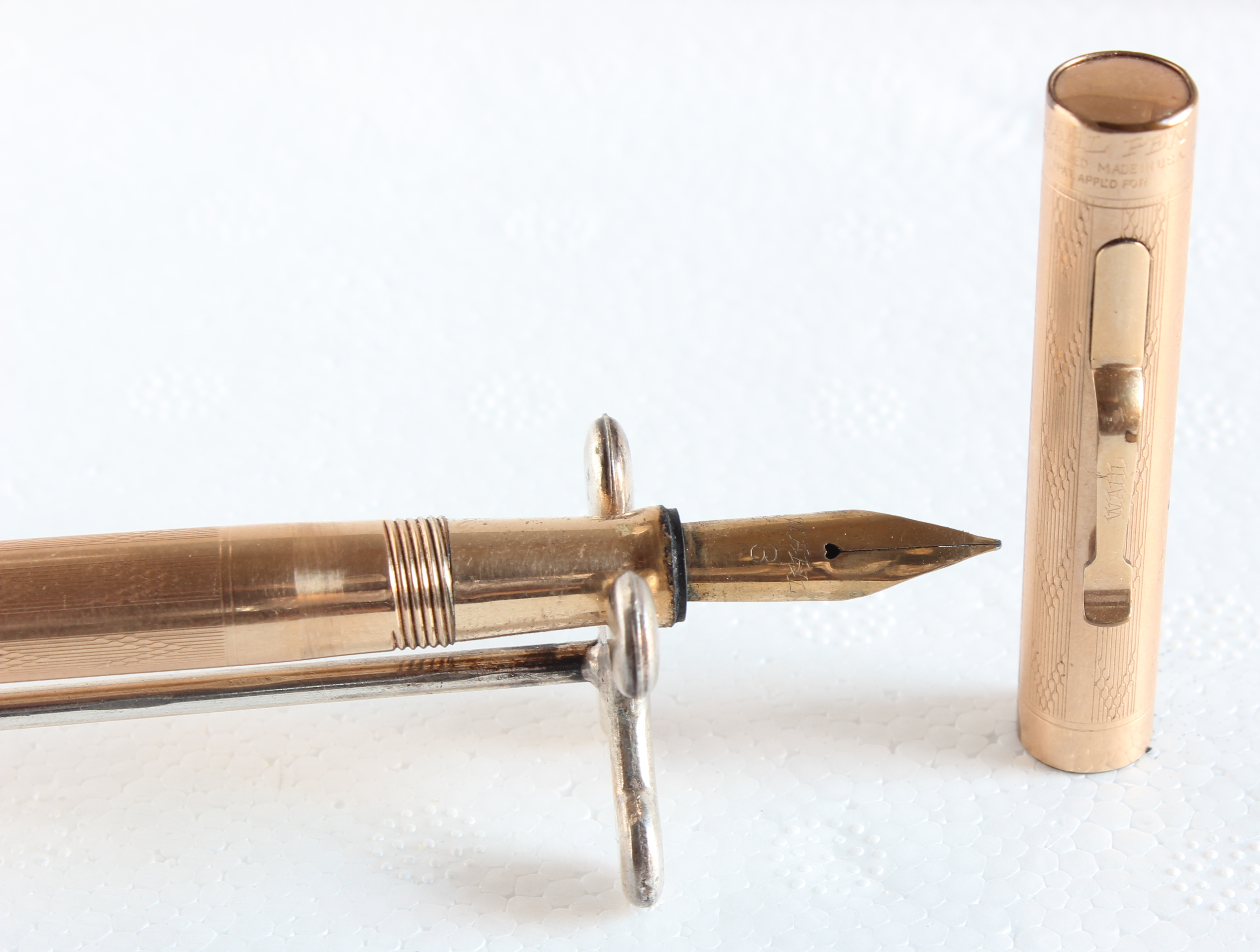 Photo of an Eversharp Wahl Engine Turned model, Gold Filled version medium size, in Dart Pattern.