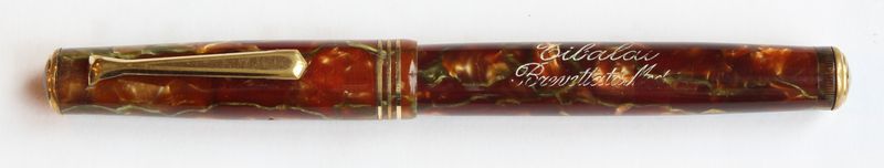Photo of a Tibaldi Mod.50 green veined red marbled version. Courtesy of Emmanuel Caltagirone in Turin Pen Show 2014.