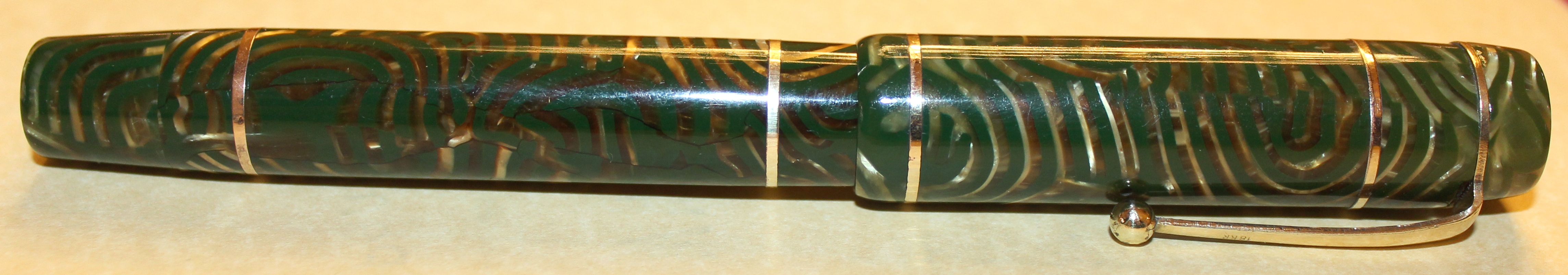 Photo of an Ancora, Duplex model, in green and transparent celluloid.