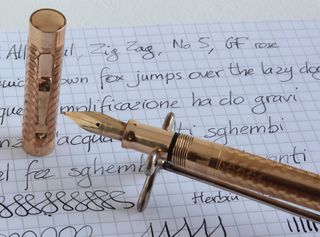 Photo of an Eversharp Wahl Engine Turned large model, n. 5 nib, in Zigzag pattern.