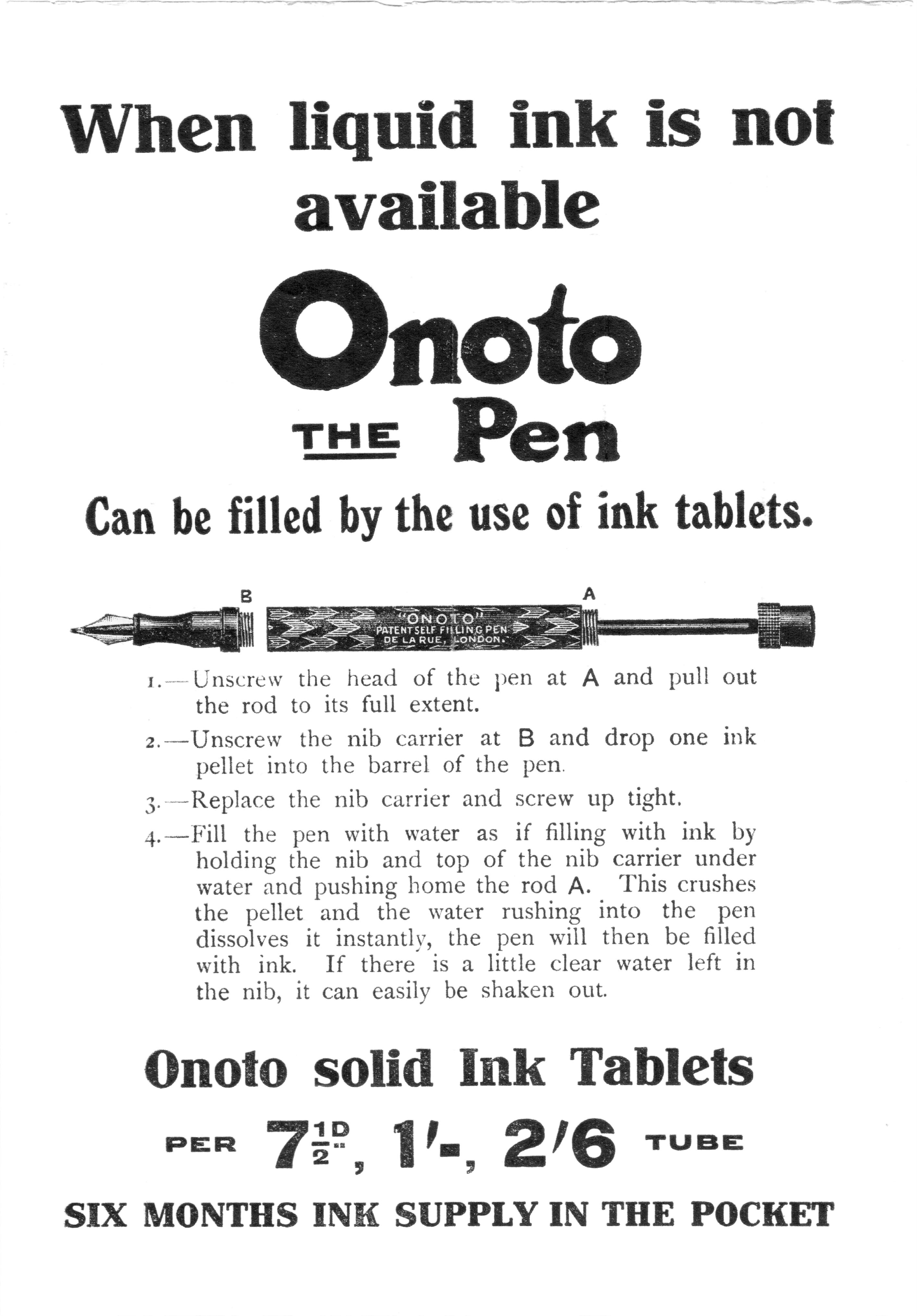 Scansione di un foglietto di istruzioni Onoto degli anni '10. Relativo ad un modello N. Origine ignota