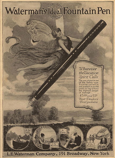 <multilang> @it|Scansione di una pubblicità Waterman del Giugno 1919. Pubblicata su Life. Ritoccata dall'autore per una maggiore nitidezza. @en|Scanning of a June 1919 Waterman advertising. Published on Life. Retouched by the author for a better sharpness. </multilang>