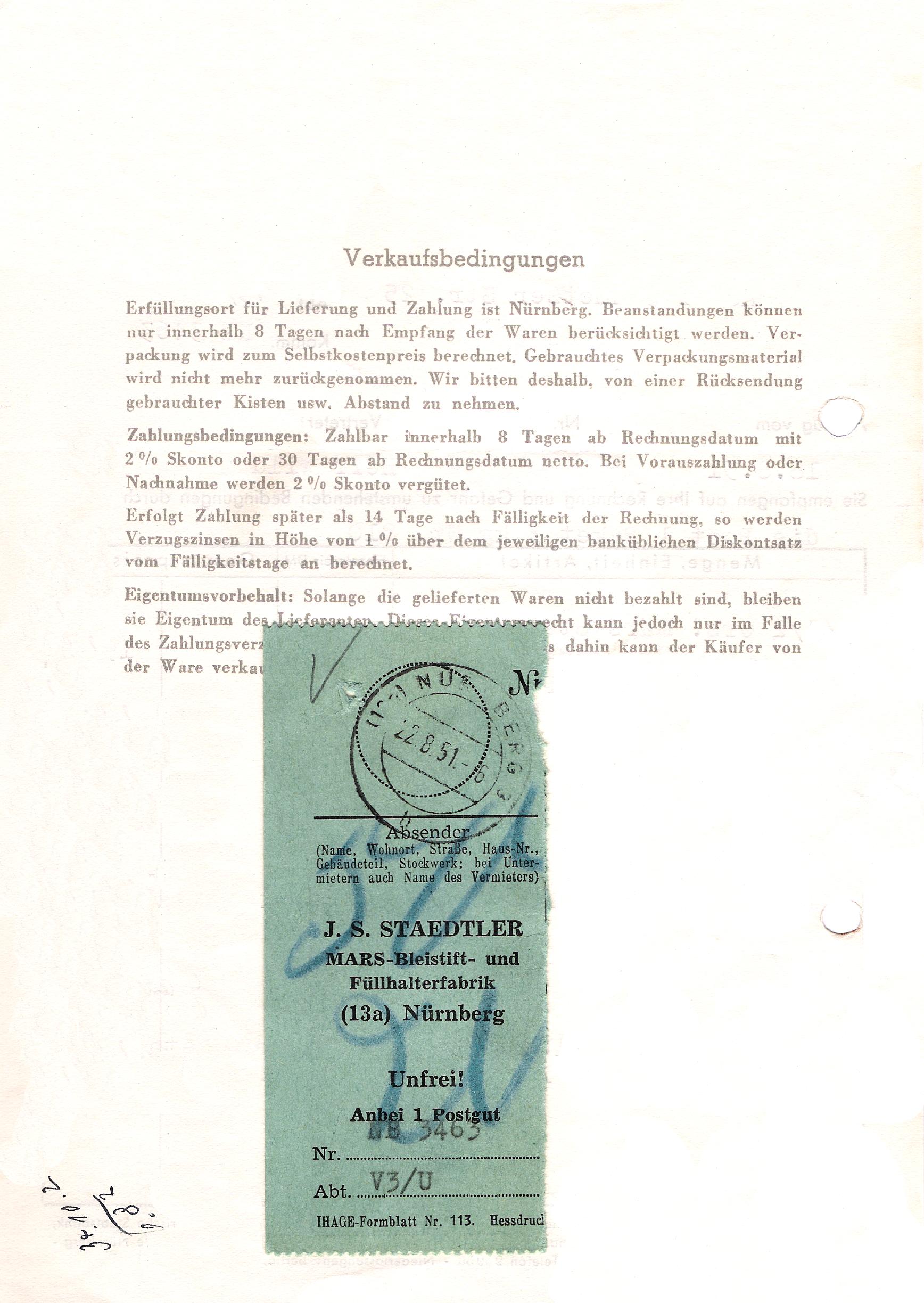 <multilang> @it|Scansione di una fattura/ricevuta Staedtler del 1951. Retro. @en|Scanning of a 1951 Staedtler invoice. Back. </multilang>