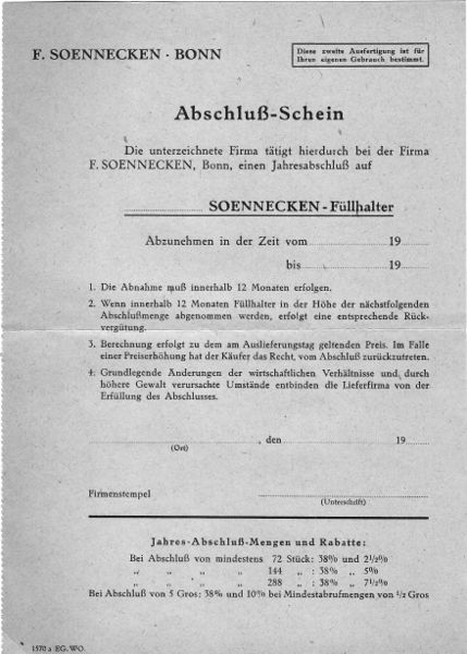 Scansione di materiale Soennecken datata 1955. Data indicativa, sta per gli anni '50. Un modulo. Dal documento originale Ritoccata dall'autore per una migliore nitidezza.