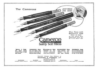 Scanning of advertising from Cameron dated 1918. Published on: The Illustrated London News. Retouched by the author for a better sharpness. Dating given by the provider. Advertising for the Cameron Safety Self Filler model.