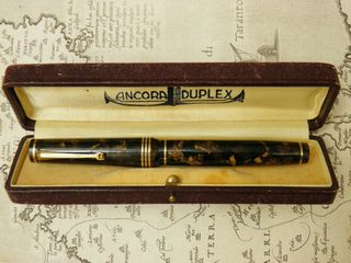 Foto di una Ancora Duplex in celluloide marmorizzata marrone. Contributo di Ambros (utente forum Ambros5).