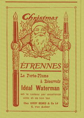 Scanning of advertising from Waterman dated 1905-12-16. Published on: L'Illustration, vol. 3277. Retouched by the author for a better sharpness. Dating established by finding the page in an archived version of the magazine. Advertising for two eyedropper filler 14 with overlay decorations.