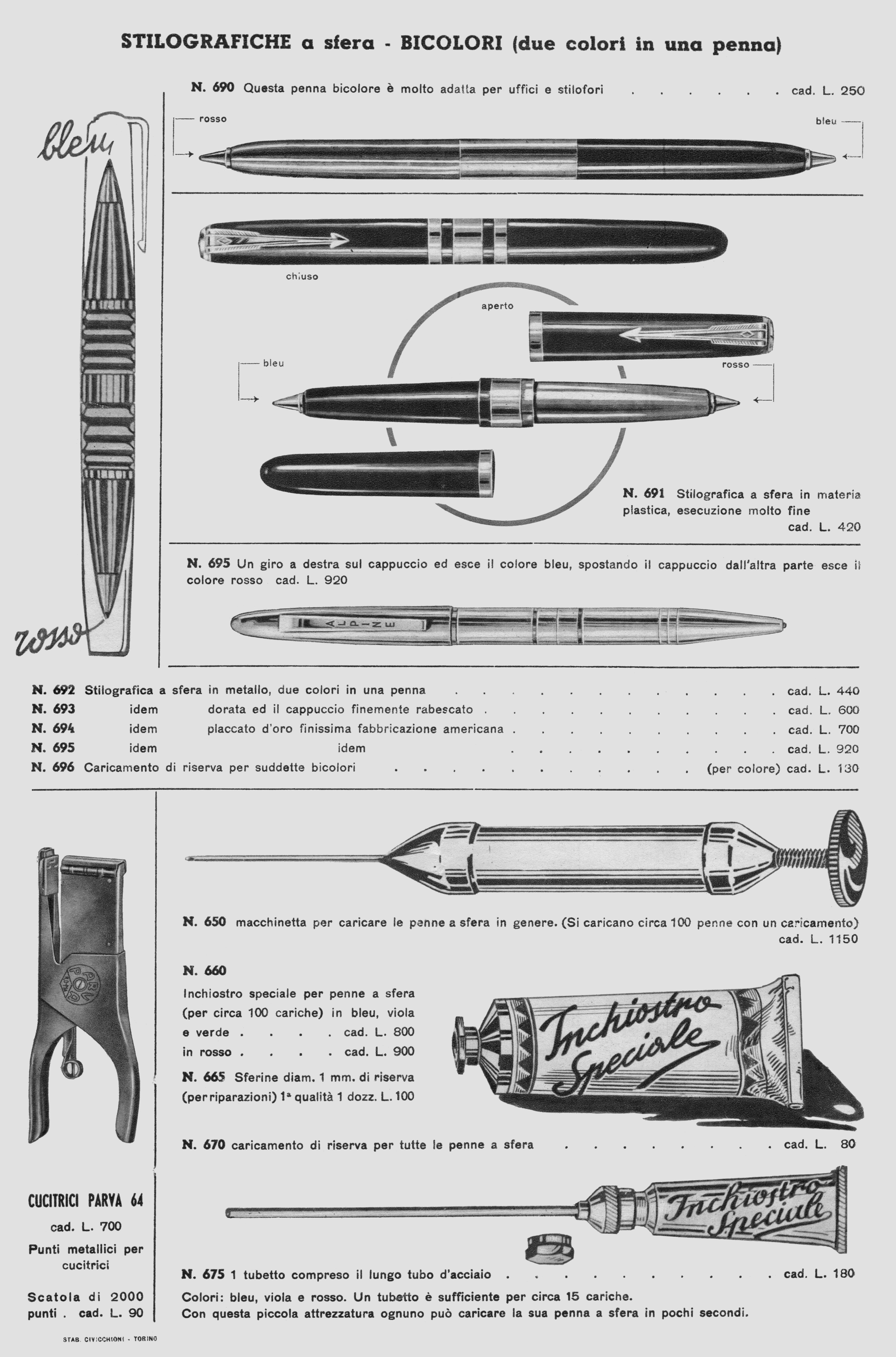 Scanning of a listing from Original Goldmichel dated 1949-03. Retouched by the author for a better sharpness. Date directly visible. Fourth page. Lists ballpoints and other stationery.