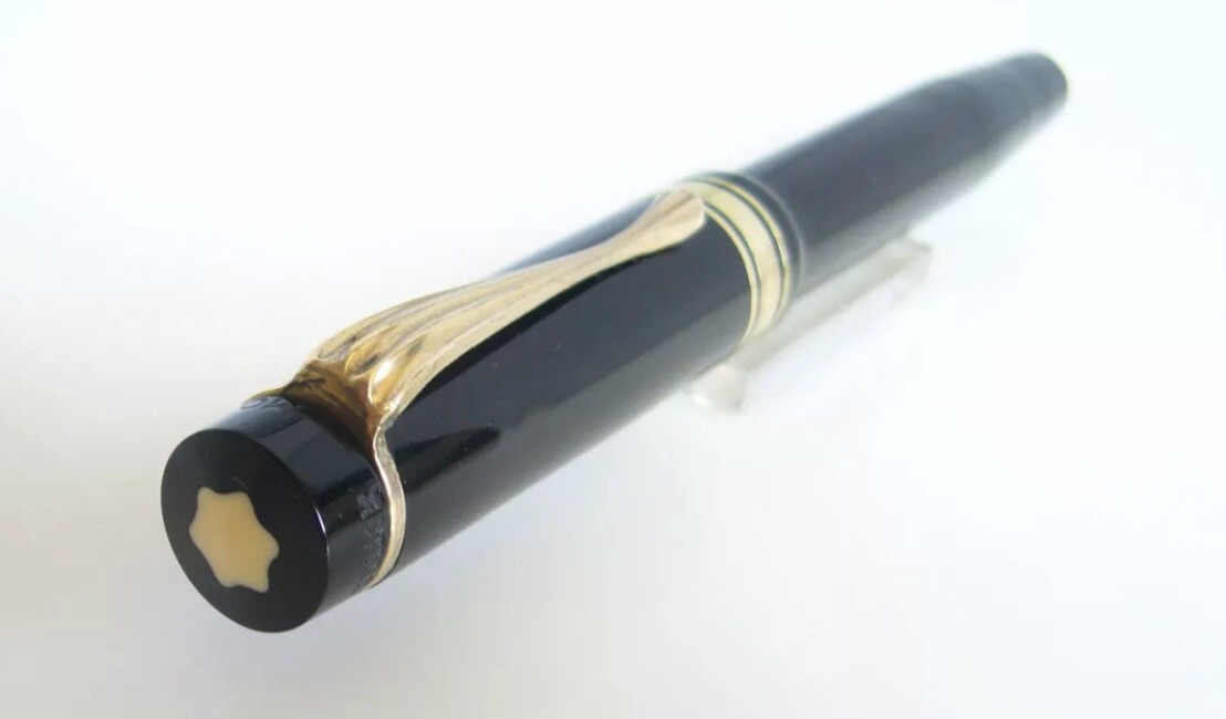 Photo of a Montblanc 134, short cap top version, with war time flat cap band and steel nib.