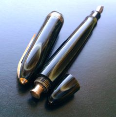Photo of a Verbana button filler Extra model in arco green celluloid.