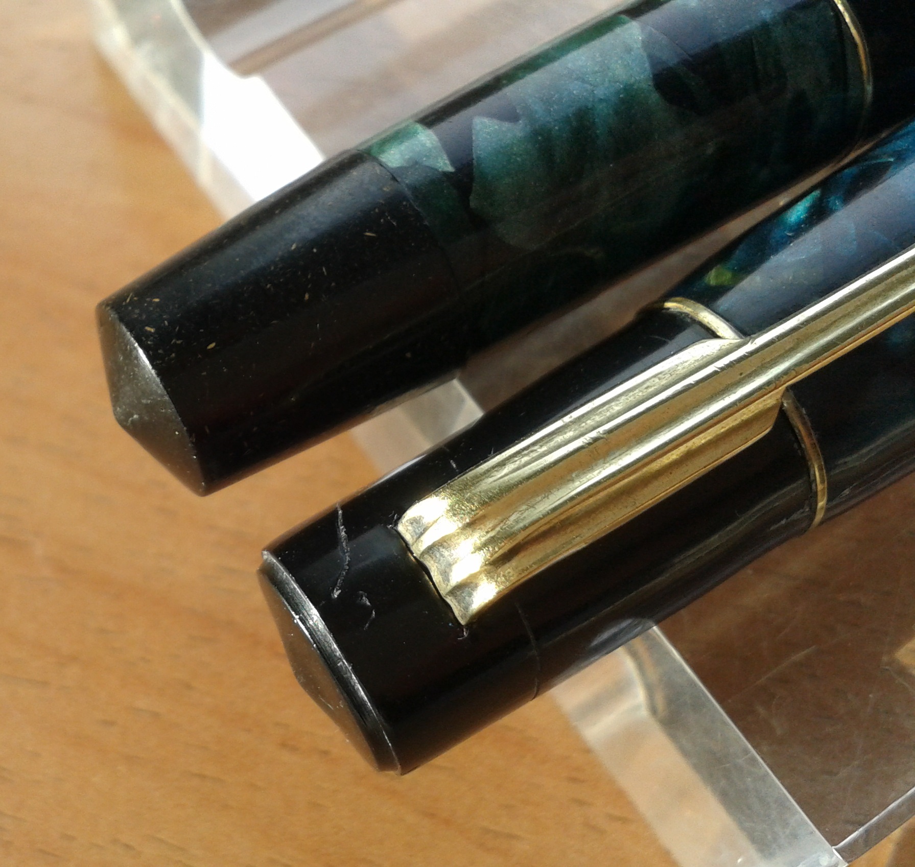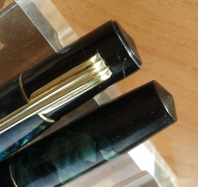 Photo of an Ro-Set in celluloid with both black and marbled blue parts.