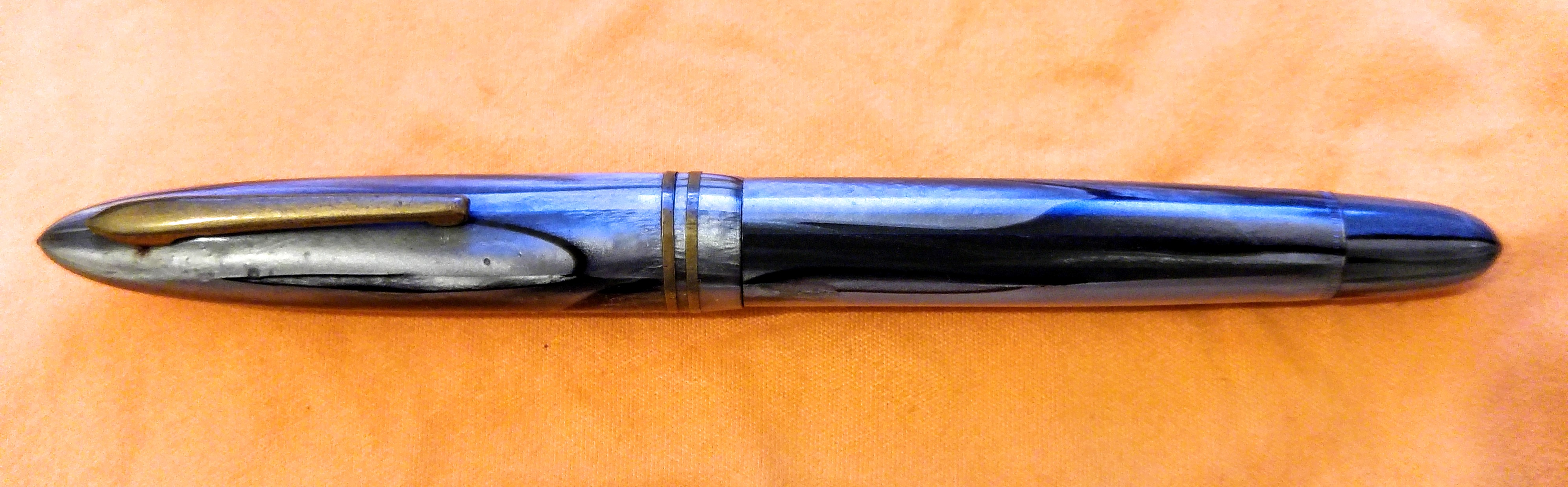 Foto di una Alba modello M2 N6 (?) in celluloide grigia striata, forme affusolate. Contributo di roccopin (utente forum roccopin).