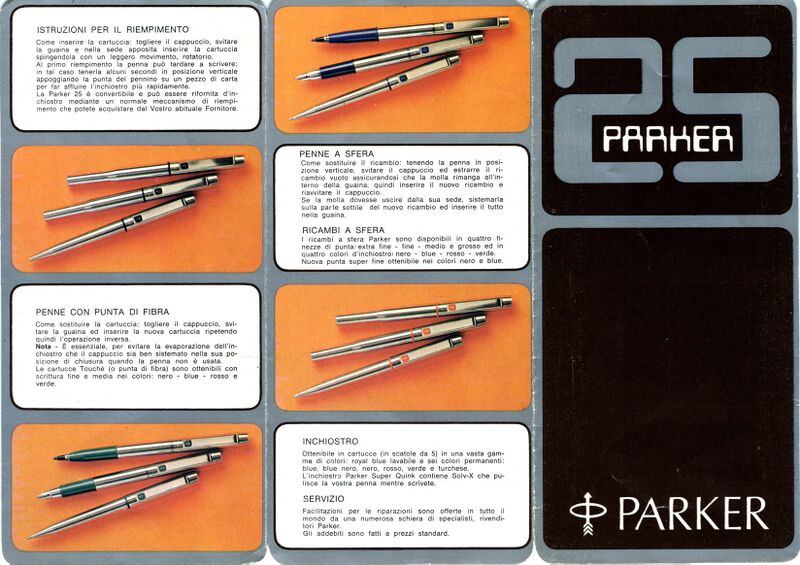 Versione del 9 giu 2016 alle 08:39 di Ottorino (discussione | contributi) (Foglietto istruzioni Parker25, da scansione del frequentatore del forum "analogico")