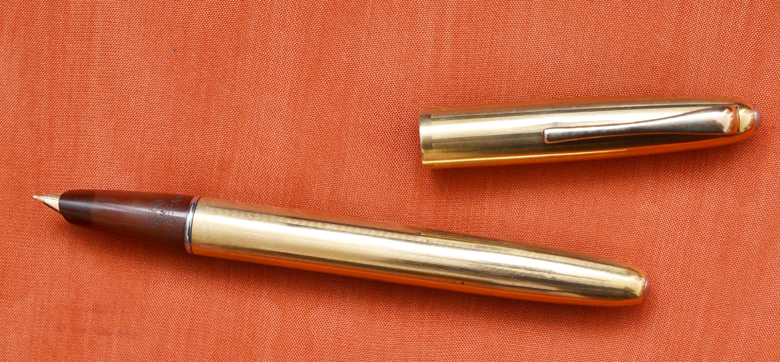 Photo of an Aurora model Duo-Cart, special rolled gold version produced for Aquila, south Italy agent, with a special pattern.