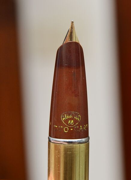 Photo of an Aurora model Duo-Cart, special rolled gold version produced for Aquila, south Italy agent, with a special pattern.