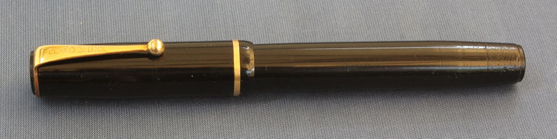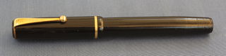 Photo of a Parker Premiere in black celluloid. Uncommon version imprinted "Fabbricato in Italia". Courtesy of Roberto Vetrugno. Photographed at 2016 Rome Pen Show.