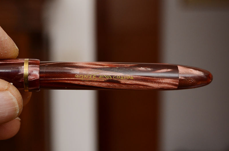 Foto di una Montegrappa, modello 601, in celluloide rossa marmorizzata. Contributo di Massimo (utente forum maxpop55).
