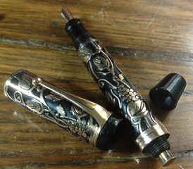 Foto di una rara Ancora Flat-top stile Duofold con rivestimento laminato oro a motivi di tralci di vite smaltato. Contributo di Massimo, utente forum Maxpen2012.