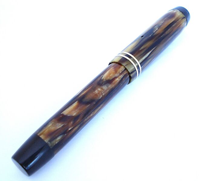 Foto di una rara Ancora Flat-top in celluloide striata, dimensione piccola. Contributo di Fabio (utente forum fountainpen.it fabbale09).