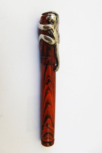 Foto di una Waterman 42½V in ebanite fiammata con fermaglio a forma di scimmia. Contributo di Luigi (utente forum lucre).