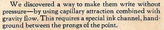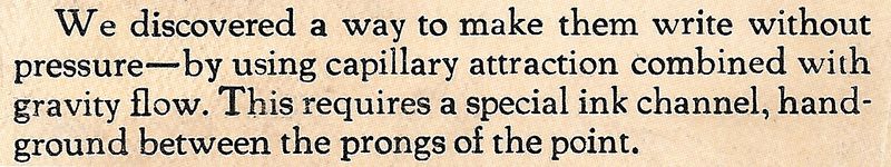 Estratto dalla scansione di una pubblicità della Parker del 1927 con la spiegazione del cosiddetto Pressureless Touch.