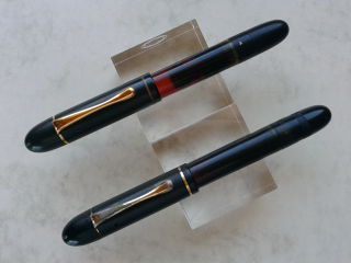 Foto di due diverse versioni di una Pelikan modello Ibis, entrambe di colore nero e con pennino in palladio, databili approssimativamente 1937 e 1938. Contributo di Giorgio (utente forum Musicus).