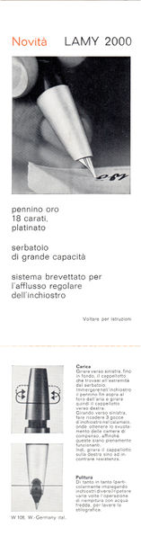 Scansione di un foglietto di istruzioni Lamy degli anni '60. Relativo ad un modello Lamy 2000. Retro. Sull'altro lato di File:Lamy-2000-Instr-Front.jpg. Da una confezione originale Ritoccata dall'autore per una migliore nitidezza.