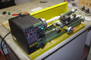 Per il restauro delle stilografiche è in genere sufficiente un tornio per piccole lavorazioni come quello illustrato in fotografia, anche se i professionisti si avvalgono in genere di modelli di maggior dimensione e peso che richiedono però molto spazio, ed un esborso nettamente superiore per l'acquisto.