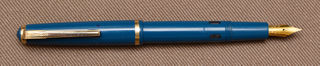 Photo of a pen produced by Artus (a Lamy trademark). Model: Artus 41. Filling system: piston filler. In azure plastic resin.