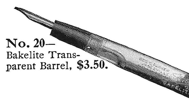 Excerpt from a 1916 Parker advertisement scanning showing a Lucky Curve model in bakelite.