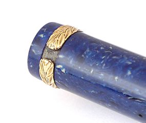 Photo of a pen produced by Aurora. Model: Aurora Duplex. Filling system: lever filler. In lapis blue celluloid.