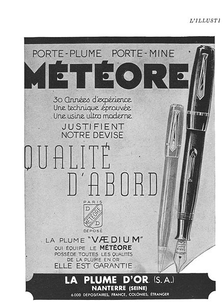 <multilang> @it|Scansione di una pubblicità Météore del 1942. Pubblicata su L'illustration. Ritoccata dall'autore per una maggiore nitidezza. @en|Scanning of a 1942 Météore advertising. Published on L'illustration Retouched by the author for a better sharpness. </multilang>