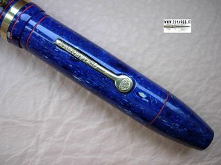 Foto di una penna Aurora. Modello: Superba. Caricamento a levetta. Realizzazione in celluloide blu lapislazzulo. Contributo di Paolo, http://www.zona900.it, (utente forum fountainpen.it sanpei).