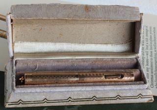 Photo of an Eversharp Wahl Engine Turned model, Gold Filled version, lady mignon size, n. 0 nib, in Checkerboard Pattern.