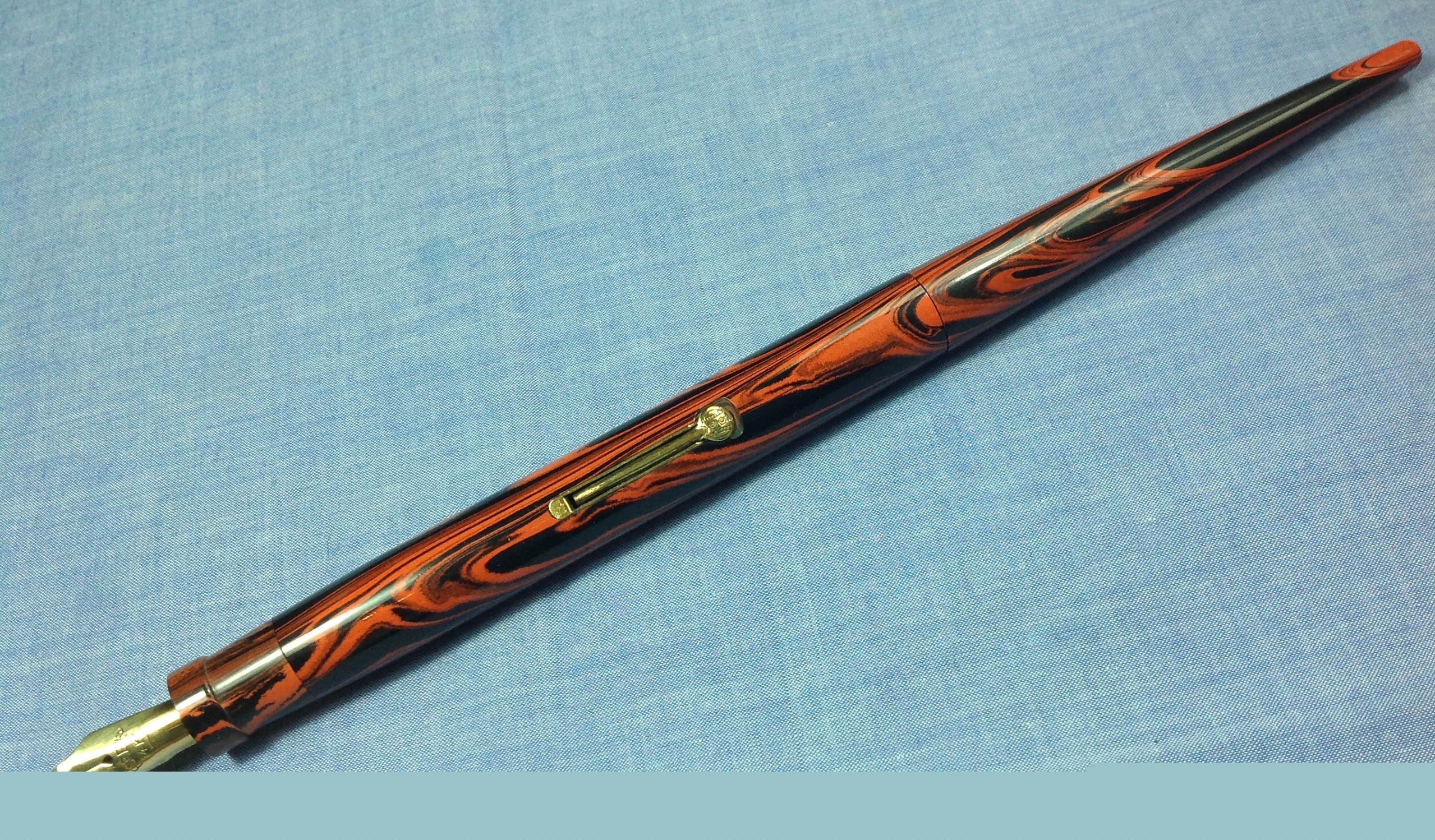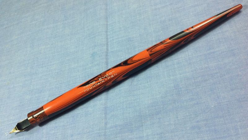 Photo of a desk pen produced by For Ever. Filling system: lever filler. In "rippled" hard rubber. Unknown model.