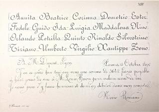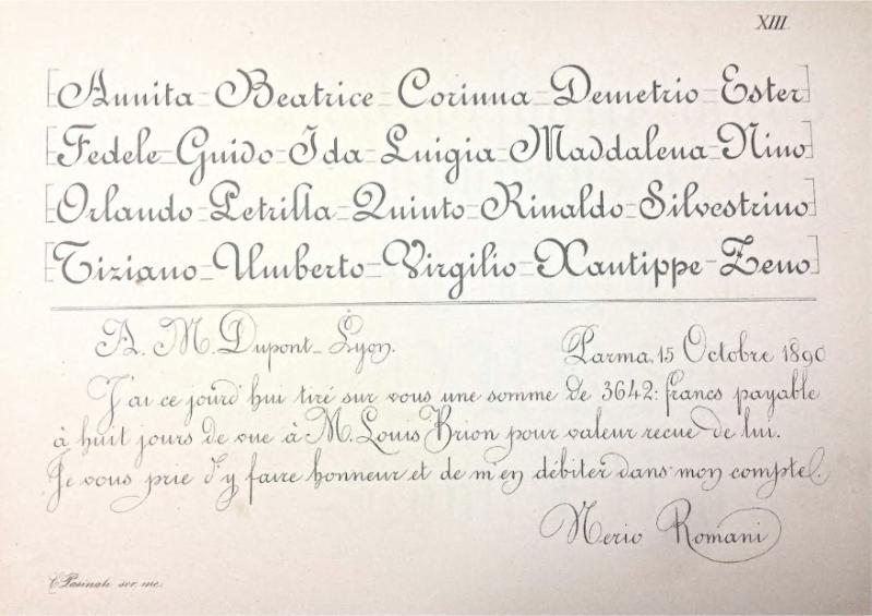Scansione del testo "Modello di calligrafia" di Claro Pasinati, pubblicato nel 1905 da Editore Luigi Battei - Parma. Terza edizione. 25 pagine. Prezzo di copertina: L. 1,50. La data è indicativa del periodo 1900 - 1910 circa, contributo digitalizzato per gentile concessione dell'originale da parte dell'utente eriel89 (Filippo).