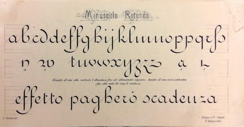 Scanning of the book "Modelli di calligrafia per le scuole superiori" by Francesco Corsini, published in 1932 by Richter & C. - Napoli (incisore: C. Galeani). 20 pages. Incomplete. Publication year unconfirmed. Original document digitized by eriel89 (Filippo) under permission of its owner, Arch. Santo Pietro Giannone.