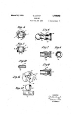 Brevetto per la modalità di realizzazione di uno stiloforo. Il successivo nº US-1629987 della Parker viene a costituire un miglioramento di questo, ed appare inoltre sul foglietto sottostante uno stiloforo di questa azienda.