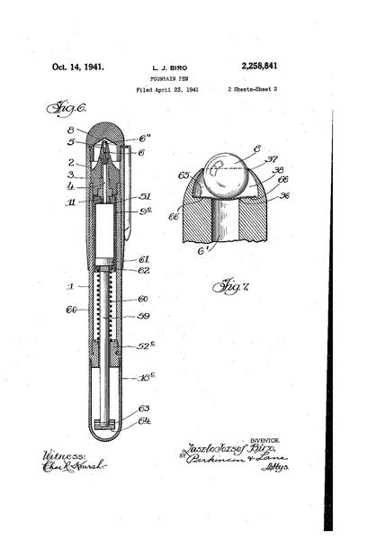 Brevetto per una penna a sfera, la prima versione di Lazlo Biro.