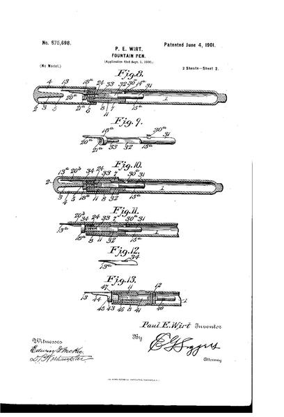 attuale15:02, 20 lug 2012Miniatura della versione delle 15:02, 20 lug 20121 159 × 1 704, 9 pagine (559 KB)Piccardi (discussione | contributi){{PatentInfo |Inventor=Paul E. Wirt |Assignee=Paul E. Wirt |Country=US |ApplicationNum=28787 |ApplicationDate=1900-09-01 |PatentNum=675698 |PatentDate=1901-06-04 |PriorityDate=1900-09-01 |Titolo=Fountain-pen |Marca=Wirt |Descrizione=Alimentatore }} ==I...