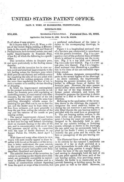 attuale18:22, 23 lug 2012Miniatura della versione delle 18:22, 23 lug 20121 159 × 1 704, 4 pagine (245 KB)Piccardi (discussione | contributi){{PatentInfo |Inventor=Paul E. Wirt |Assignee=Paul E. Wirt |Country=US |ApplicationNum=460494 |ApplicationDate=1908-10-31 |PatentNum=978419 |PatentDate=1910-12-13 |PriorityDate=1908-10-31 |Titolo=Fountain-pen |Marca=Wirt |Descrizione=Alimentatore }} ==...