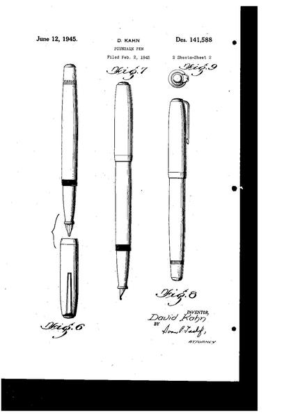 | attuale | 23:31, 29 ago 2012 | 1 159 × 1 704, 3 pagine (54 KB) | Piccardi (discussione | contributi) | {{PatentInfo |Inventor=David Kahn |Assignee=David Kahn Inc. |Country=US |ApplicationNum=117720 |ApplicationDate=1945-02-02 |PatentNum=D141588 |PatentDate=1945-06-12 |PriorityDate=1945-02-02 |Titolo=Design for a fountain pen |Marca=Wearever |Descrizione... |