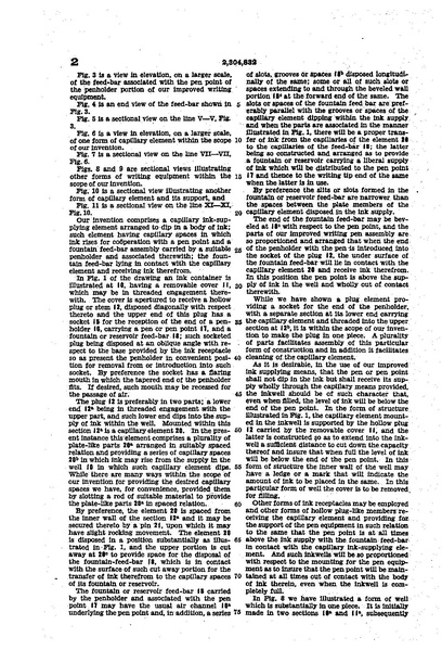 Brevetto per un calamaio con serbatoio di inchiostro, con meccanismo di distribuzione dell'inchiostro verso la punta della penna. Fa riferimento a richiesta n° 68485 del 1948-12-31 di cui questo brevetto sarebbe una continuazione. Precursore della Dip-Less.