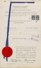Fa riferimento ad un brevetto di design americano di Laszlo Moholy-Nagy, D132726 del 22 agosto 1946, inesistente. Interessanti i documenti per la registrazione a titolo della moglie.
