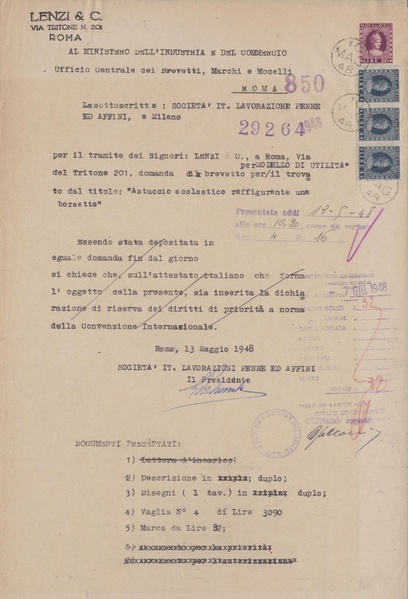 | attuale | 12:29, 7 set 2025 | 4 531 × 6 250, 10 pagine (5,41 MB) | Piccardi (discussione | contributi) | == Dettagli == {{InfoModello |Numero=29264 |Data=1948-09-30 |Richiesto=1948-05-16 |Marca=Silpa |Titolare=Società italiana lavorazione penne ed affini |Tipo=di utilità |Titolo=Astuccio scolastico raffigurante una borsetta |Domanda=850 |Ufficio=Roma |Fonte=[https://tecadigitaleacs.cultura.gov.it/media/ricercadl?rictree=MINISTERO+DELL%27INDUSTRIA%2c+DEL+COMMERCIO+E+DELL%27ARTIGIANATO%2fUFFICIO+ITALIANO+BREVETTI+E+MARCHI%2fArchivio+generale%2fModelli%2fBrevetti+dal+n.+1+al+n.+100.000 Archivio C... |